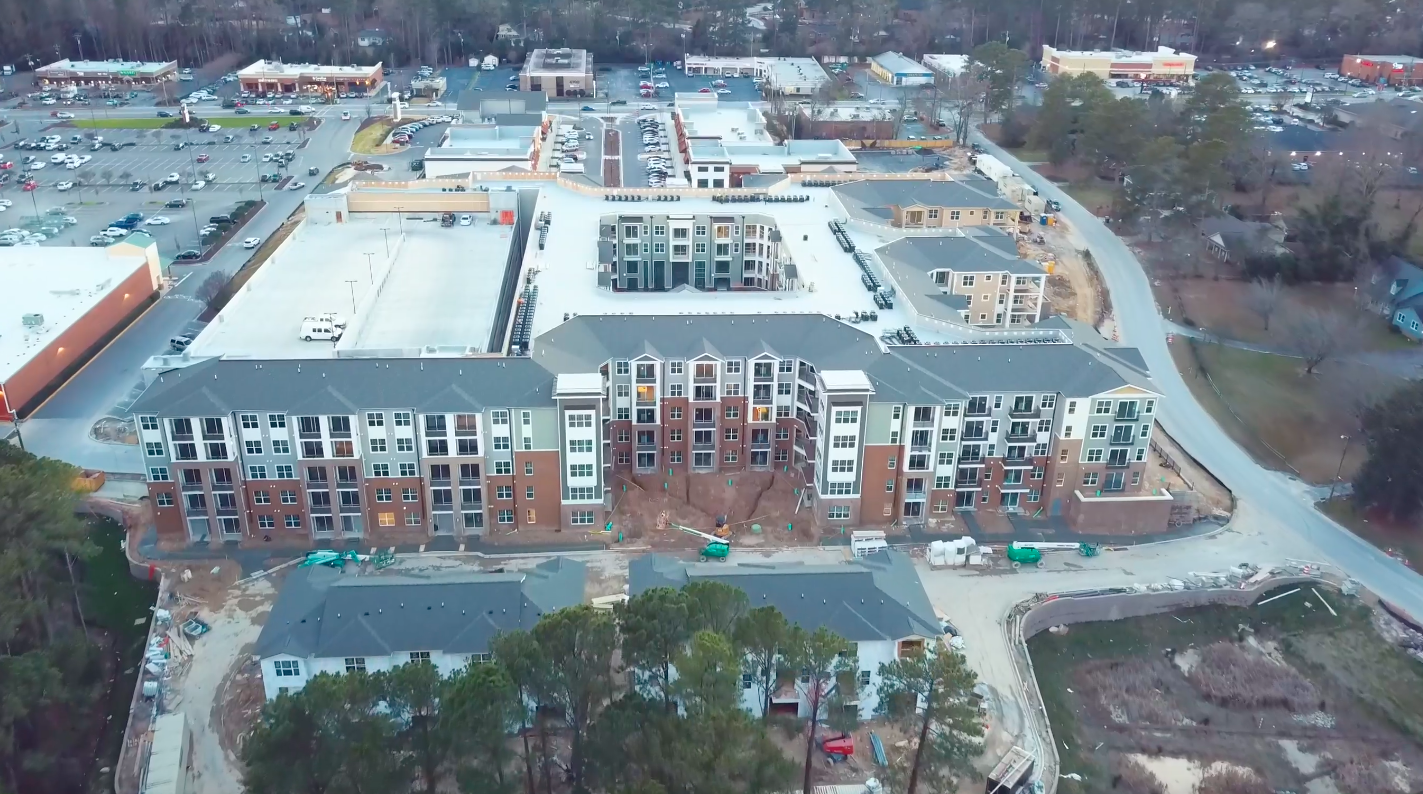WIELAND is working toward completing The Cardinal multi-family project in Forest Acres, SC. The residential and retail development consists of four retail buildings (43,000 SF), 246 apartment units (312,000 SF), 10 townhomes (11,000 SF) and a 5-story parking garage with 639 parking spots (159,000 SF). The project began in June 2018 and is expected to be completed in March 2020.