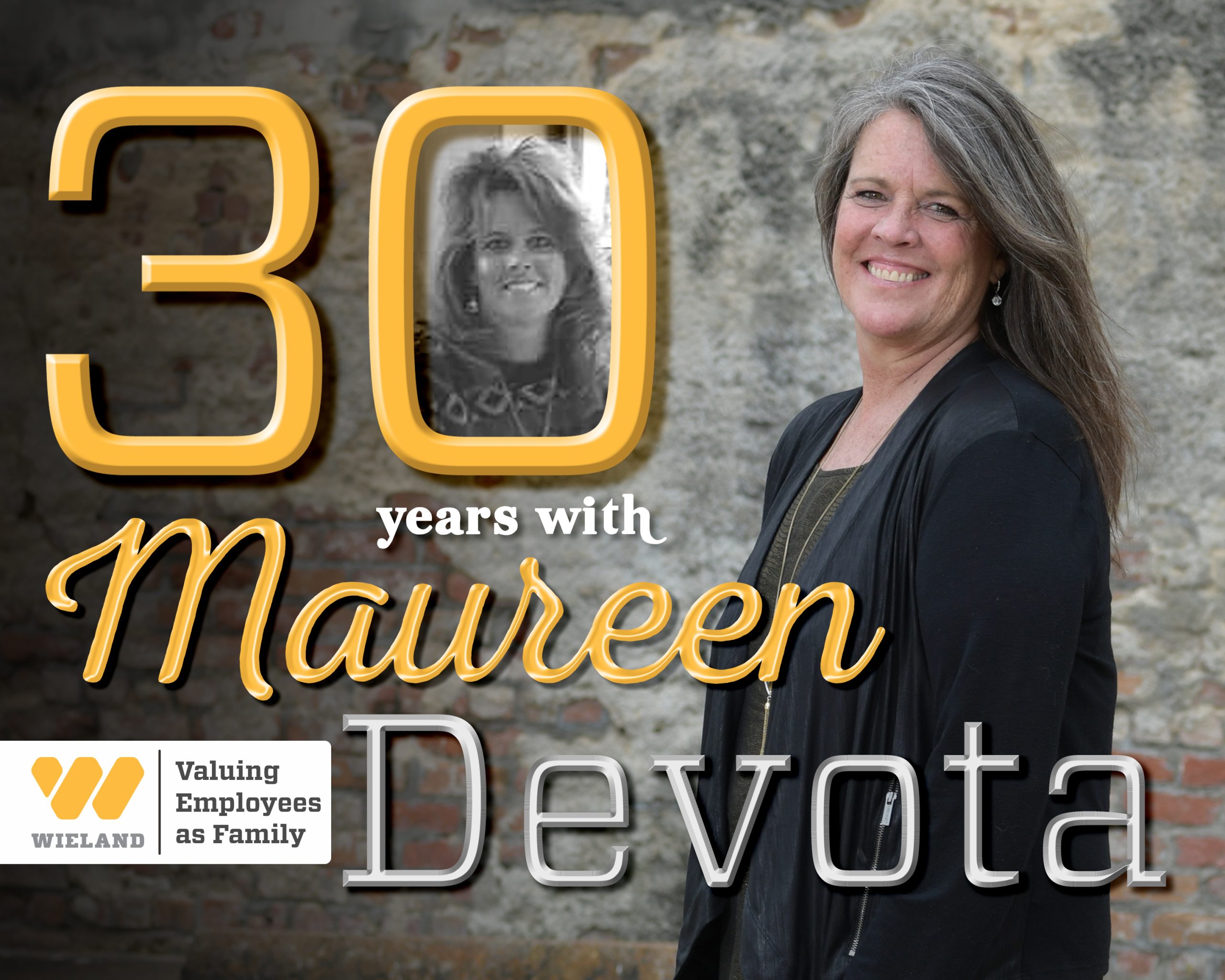 WIELAND would like to congratulate Maureen Devota this week as she completed her 30th year of service at WIELAND. Maureen joined WIELAND on November 4, 1993, after attending Ferris State University, and graduating with a degree in accounting. She began her WIELAND career as a controller, and today serves as the Chief Financial Officer. Maureen is currently one of four employees at WIELAND with 30 or more years of service. WIELAND would like to thank and congratulate Maureen on this career milestone!